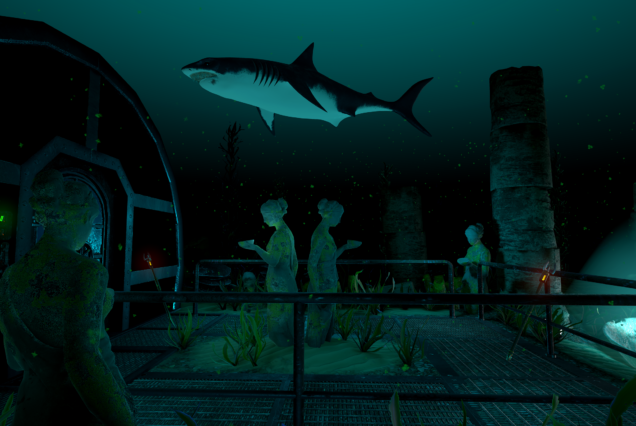 Uma sala de escape virtual subaquática onde os jogadores resolvem quebra-cabeças antigos, afastam tubarões e tentam sair vivos.